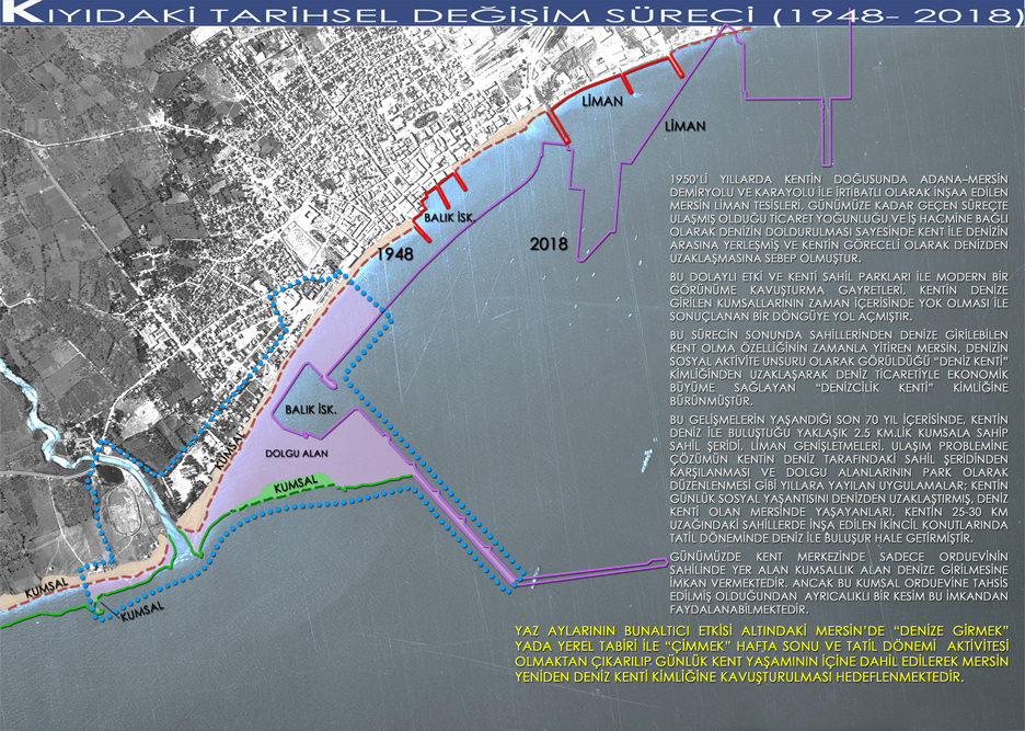 Yarışmayı Açan Kurum: MERSİN BÜYÜKŞEHİR BELEDİYESİ Yarışmanın Konusu (Şartname´den); Kent merkezinde yer alan yarışma alanı onaylı imar planı kararlarına konu olmuş, ancak ortaya çıkan uygulamalar beklenen sonuçlardan uzak kalmıştır. Bir başka ifade ile; merkez (yakın çevre) ve kent bütünü ile ilişkileri kurgulanamamış, bir yandan da alanın kendi sınırları içinde planlama, tasarım ve işlevler açısından getirilen çözümlerin de yetersiz kaldığı görülmüştür. Buradan hareketle günümüzde farklı işlevlere sahip olan yarışma alanının; bütünsel bir yaklaşımla ele alınarak kente katılması ve kent kimliğinin zenginleşmesine katkıda bulunması, niteliği arttırılmış kıyı ve diğer alt alanların kentlinin kullanımına sunulması, bunun yanı sıra özgün tasarımlara dayalı mekânların elde edilmesi ile güzel sanatların desteklenmesi yarışmanın ana amacını oluşturmaktadır. Yarışma hakkında detaylı bilgiye buradan ulaşabilirsiniz