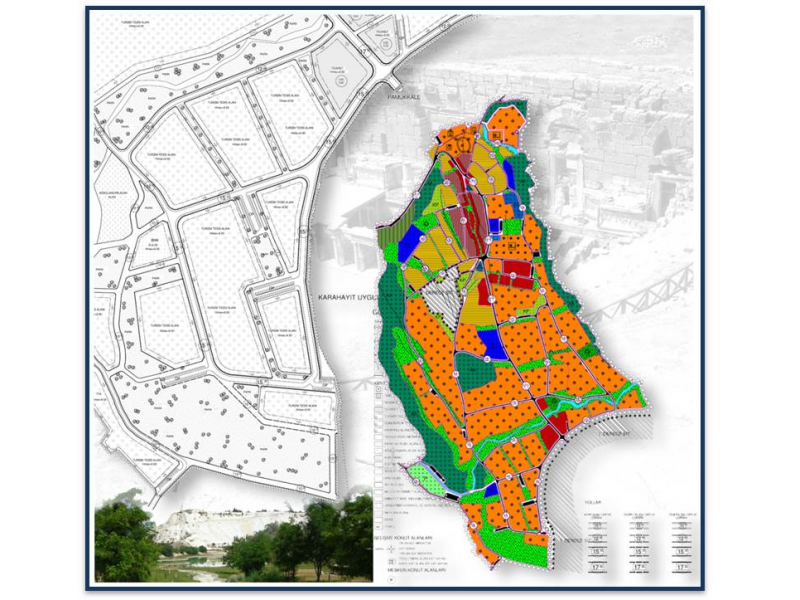 İmar Planı çalışmaları kapsamında; Nüfusun ve yerleşimin sosyal hareketliliği ve bu hareketliliğin kültürel değerlere yansımaları ortaya konularak yerleşim desenine etkileri irdelenmekte, kültürel değerlerin yaşatılabilmesi ve yaygınlaştırılabilmesi için yöntemler araştırılmakta, yerleşim alanında kentsel gelişmeyi kısıtlayan sosyo-ekonomik ve fiziki eşikler temelinde değerlendirmede bulunularak, gelecekteki kent makroformunun gelişebileceği yönler ve potansiyel üst sınırlara yönelik kestirimler yapılmaktadır. Buradan elde edilen veriler doğrultusunda yerleşimdeki nüfus ve işgücü projeksiyonları yapılarak, kentin plan hedef yılına ilişkin mekan kullanım kararları belirlenmektedir. Bakanlık veya ilgili Belediyesi tarafından onaylanarak ilan/askı süreçleri sonrasında kesinleşen imar planı çalışmalarımızdan bir kaç örnek aşağıda yer almaktadır.