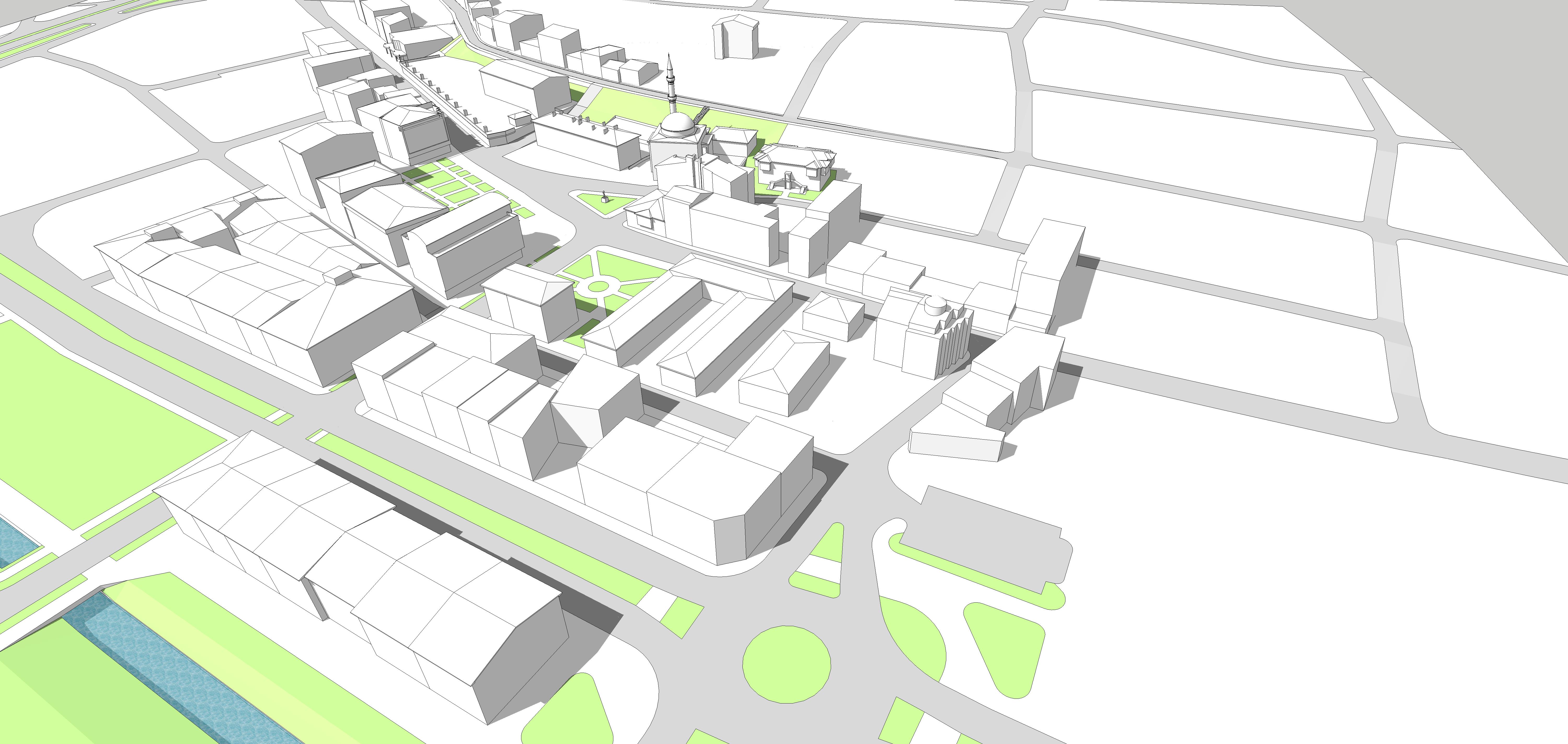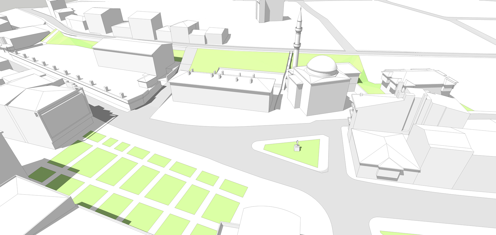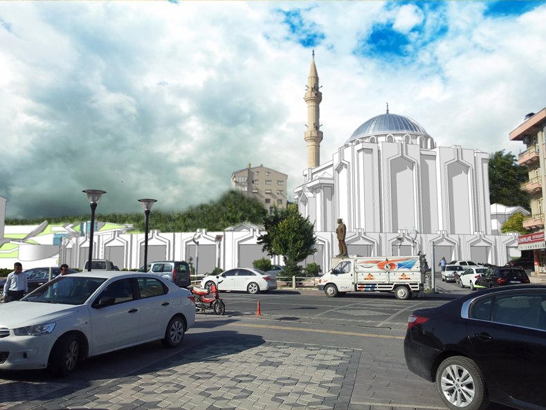 Öneri - Kaymakamlık binasının kaldırılması sayesinde algılanabilirliği artırılan ve yeni cepheye kavuşturulan Merkez Cami