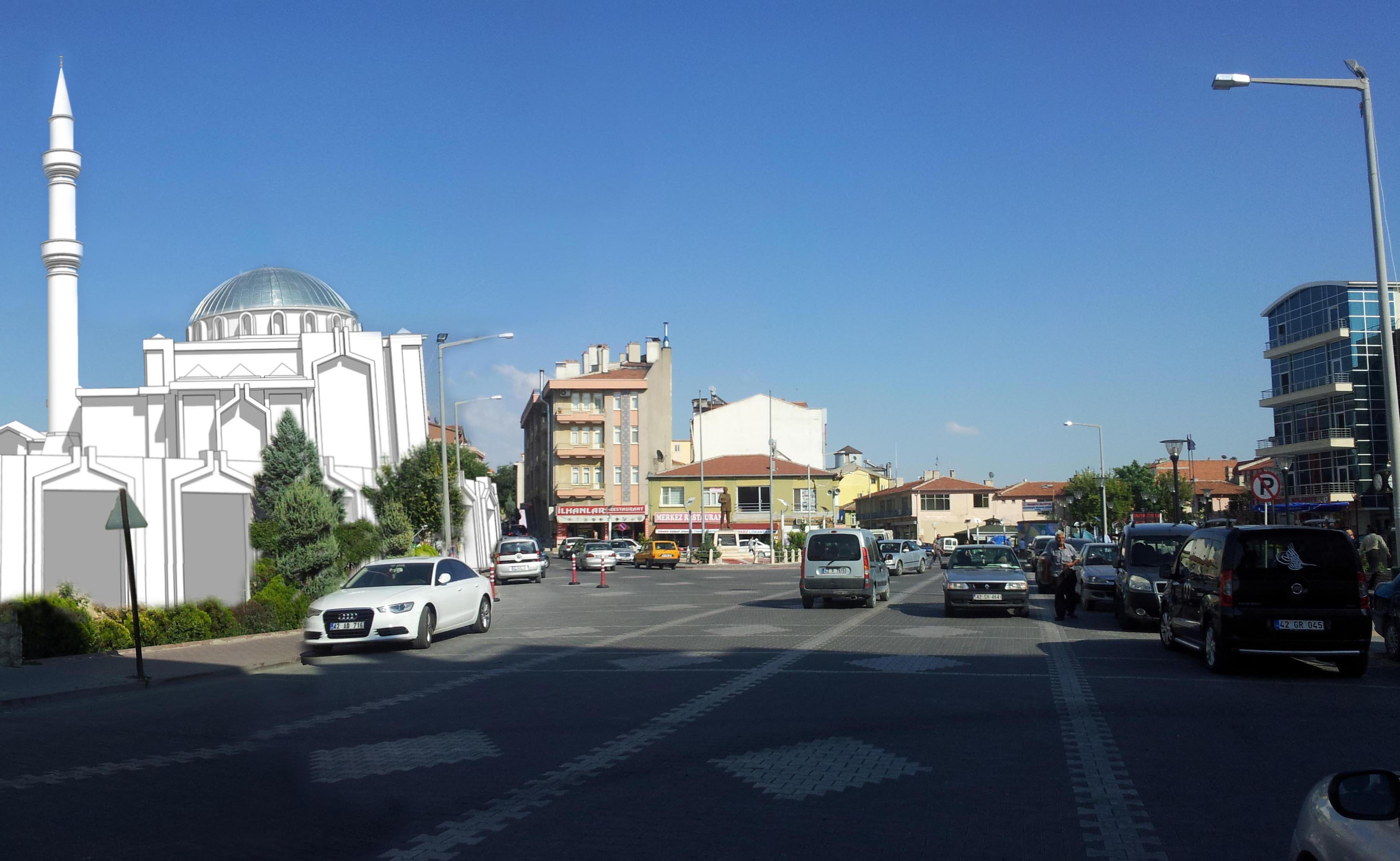 Mevcut Durum - Ana caddeden Cami ve meydana bakış